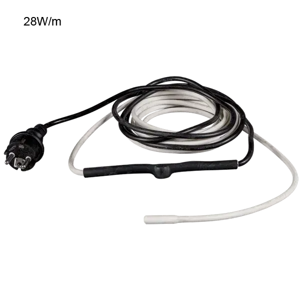 Med värmekabel 28W/m med mitt-termostat skyddar du kondensavlopp och dräneringsslangar mot frost även under de kallaste vintrarna. Kabeln aktiverar sig automatiskt vid +2°C och stänger av vid +8°C. Därför sparar du både energi och arbete, samtidigt som du undviker frusna ledningar.